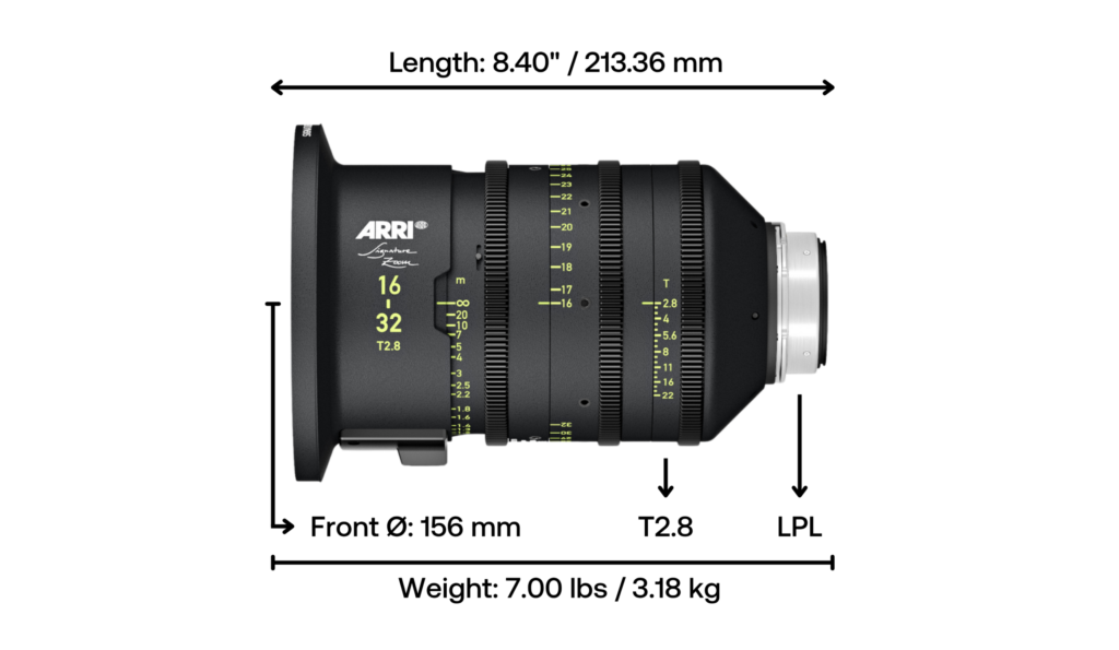 The ARRI Signature Zoom 16–32mm T2.8 is the ultra-wide member of the Signature Zoom family, delivering exceptional clarity and smooth, organic rendering across large-format sensors. This short zoom excels in tight spaces and sweeping wides, offering a clean, natural look that matches seamlessly with ARRI Signature Primes. Focus transitions remain soft and controlled, and the lens maintains impressive edge-to edge performance even at its widest setting. Its compact form factor makes it well suited for handheld, Steadicam, and gimbal work where a premium wide-angle aesthetic is required. Available to rent or sub rent from Cine Visuals.