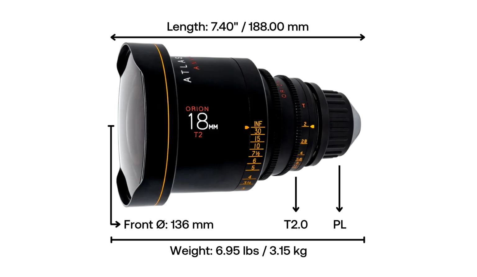 The native image circle is 31mm diagonal, designed for Super 35 coverage, but Atlas offers 1.4x and 1.6x rear LF Extenders that expands coverage to full-frame sensors like the ARRI Alexa LF, Sony Venice, and RED Monstro.