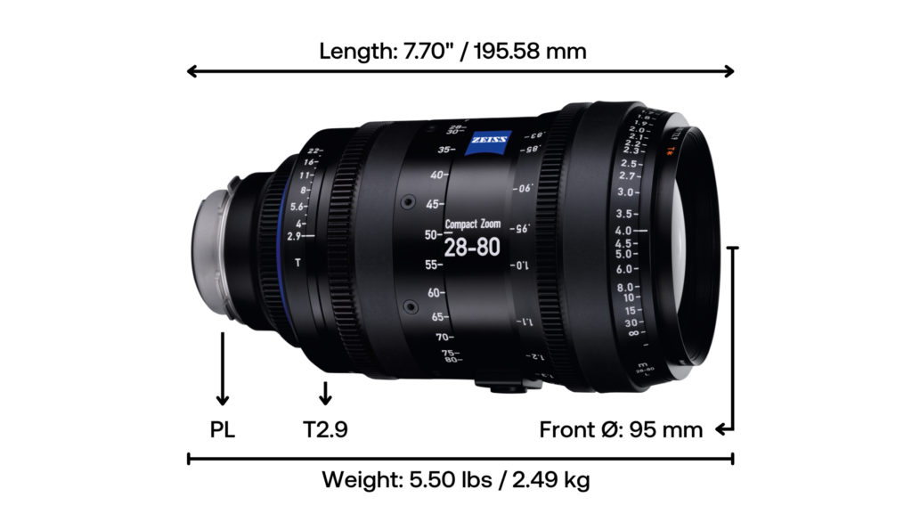 The Zeiss Compact Zoom 28–80mm T2.9 is the versatile mid-range member of the Compact Zoom family, offering full-frame coverage with the signature Zeiss clarity and contrast. It delivers a neutral, detailed image that holds up in high-resolution workflows while maintaining smooth focus transitions and reliable color consistency. Available to rent or sub-rent from Cine Visuals.